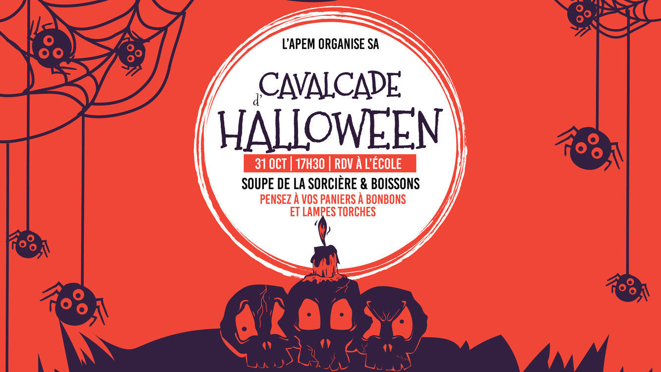????Le vendredi 31 octobre, à 17h30 tapantes, les portes de l'école s'ouvriront sur un monde peuplé de fantômes rieurs, de citrouilles affamées et de sorcières en goguette.... Vous l'aurez deviné, la Cavalcade d'Halloween est de retour, plus terrifiante que jamais ! ????