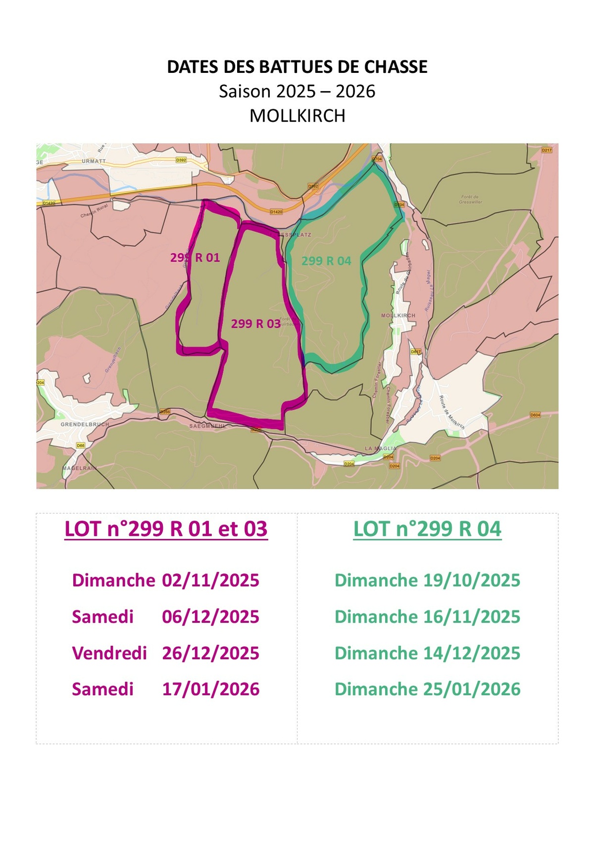Dates des battues de chasse